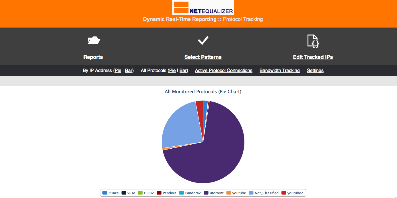 We have some nice color coded pie chart graphs that show customers percentages of their bandwidth by application. This feature is popular really catches their eye.
