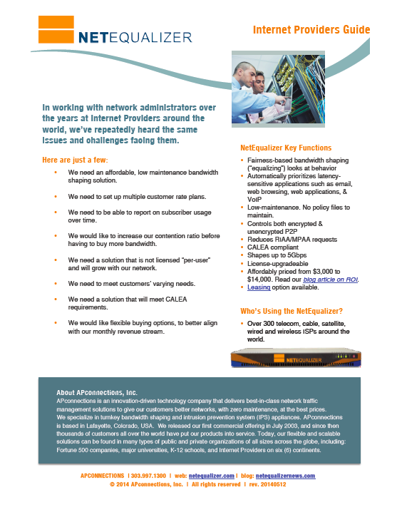 Coming this July, we will offer the ability to store up to one year of reporting data from our Dynamic Real-Time Reports onto a cloud server. The benefits will be numerous, as it will be complete turn key access to historical usage at the touch of button. For example, if you want to know what your usage data looked like for the same month last year, you can pull it up instantly. To get started, the requirements will be fairly simple: 1) Your NetEqualizer must have access to the Internet (our cloud server). Retrieval will be as easy as providing a date range, and IP or subnet. In version 1.0, all usage will be IP based. We will also include reports for system protocol usage (Netflix, YouTube, etc.) depending on demand for this information in coming releases. If you have any questions, please feel free to contact us at: -or- 303-997-1300 NetEqualizer Summary Guide for Internet Providers This month we have updated our Internet Providers Guide. If you are a telecommunications, satellite systems, cable, or wireless/wired Internet Services Provider (ISP), and are considering a NetEqualizer, you may want to review our updated Internet Providers Guide. This summary guide (2-3 pages) is focused on issues specific to Internet Providers, and explains how the NetEqualizer is used by our customers to address these common issues. This is a quick way to learn about how the NetEqualizer might apply to your environment. If you are a current customer, these guides are a great read to optimize your NetEqualizer configuration. Take a look to see if there are features that you might not be using and want to take advantage of in your NetEqualizer installation. We would be happy to help you with your configuration. If you are current on NetEqualizer Software and Support (NSS), contact: -or- 303-997-1300 to get help optimizing your NetEqualizer. Spotlight: Our South American Reseller, Reinaldo Neilla As many of our customers know, we sell directly to businesses in most geographies, particularly the U.S. and Canada. However, in some areas of the world, we work with reseller organizations. Many of these international resellers started as our customers, loved our product, and asked to get involved in building out the marketplace in their country. We find that our international resellers are great at navigating customs requirements, communicating in local languages, and sharing their technical knowledge of the NetEqualizer. This month we profile one of them, Telefonia Publica y Privada S.A. (TPP S.A.). TPP is an Argentinian WISP with over 30,000 broadband users in different cities in the interior of Argentina (growing at a rate of 450 per month). Reinaldo Neilla of TPP has been using a NetEqualizer for his business since July 2008. According to Reinaldo, “the NetEqualizer helps us (TPP) to automatically and economically provide flow control for our customers. We converted from an Allot NetEnforcer and have never looked back.” TPP represents NetEqualizer to customers in South America. If you are in South America, and would like to talk to or email Reinaldo, you can find his contact information on our web page, here: NetEqualizer TPP Profile We often have networking tutorials in our blog – but not all of them are for enterprise networks. Recently, our Co-Founder, Steve Wagor, wrote a how-to on improving wireless dead spots in your home and setting up wireless home music. Check it out! Why Does Fear Sell over Value for IT?